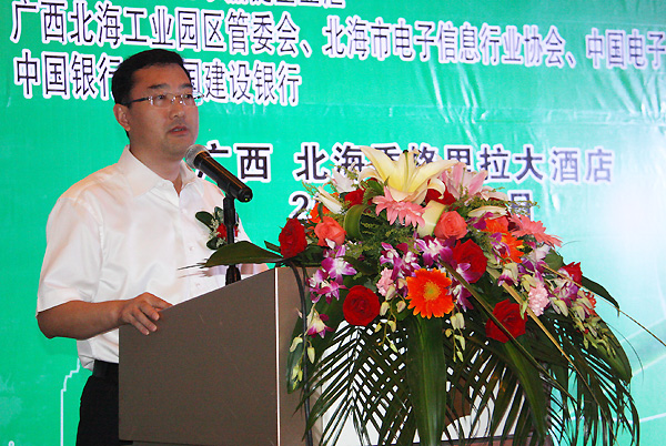 ' 作為本次論壇邀請的演講嘉賓,中國電子集團(tuán)控股有限公司副總經(jīng)理、北海市電子信息行業(yè)協(xié)會(huì)會(huì)長賀海華在論壇上做了題為“招商扶商 合作共贏 助力北海電子信息產(chǎn)業(yè)發(fā)展”的主題演講。賀海華會(huì)長向與會(huì)嘉賓介紹了北海市電子信息行業(yè)協(xié)會(huì)的基本情況和開展的重點(diǎn)工作,并分享了作為會(huì)長單位的中國電子北海產(chǎn)業(yè)園在過去幾年來,搭建平臺(tái)、招商扶商,助力實(shí)現(xiàn)了北海電子信息產(chǎn)業(yè)跨越式發(fā)展。未來,協(xié)會(huì)及會(huì)長單位將繼續(xù)完善產(chǎn)業(yè)發(fā)展環(huán)境,搭建政企、銀企等多方溝通平臺(tái),合作共贏,助力北海千億元電子信息產(chǎn)業(yè)發(fā)展。